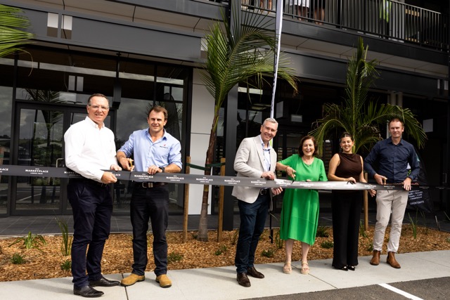 The ribbon has been cut on a new commercial building at Epiq, although details on who will take on the eight new shops is still under wraps.