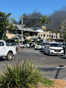 Chaos in Byron as bike shop blaze shuts down CBD