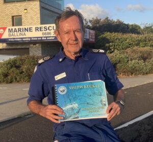 Marine Rescue Ballina Captain Geoff Hutchinson, pictured with the book he wrote and sold to raise funds for the new patrol boat last year.