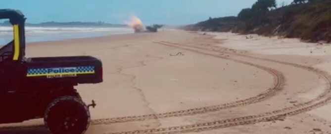 It was an explosive start to Monday morning for Lennox Head residents after a beachgoer found dangerous military device washed up on the sand.