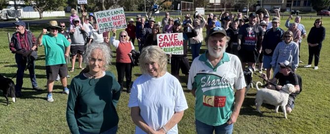 More than 70 concerned locals gathered at Ballina’s Cawarra Park on Sunday to protest council plans that could see part of the popular public reserve