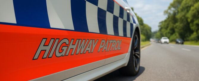 Three charged after stolen vehicle crossed the border, continued on damaged wheels, and stopped in Russell Street.